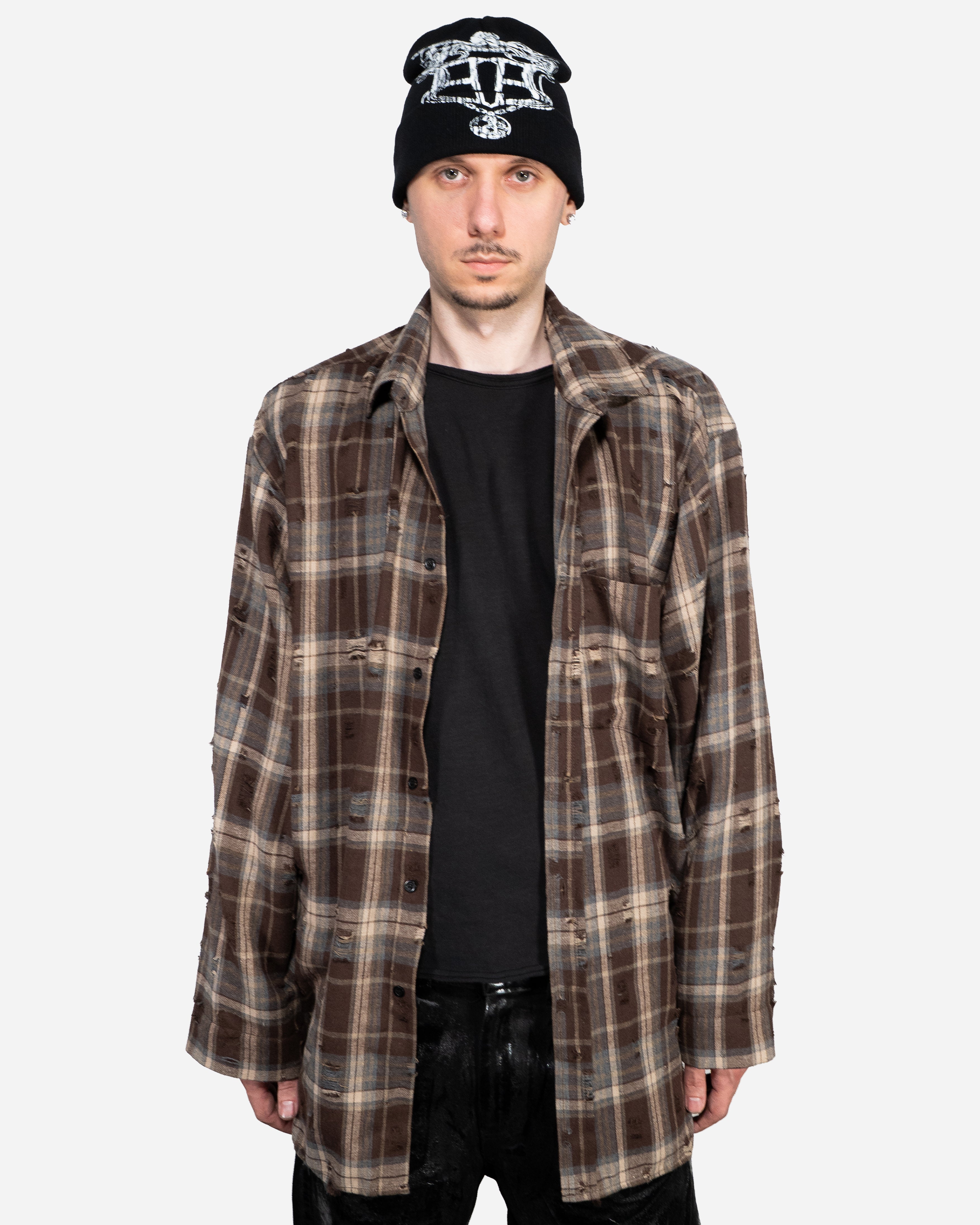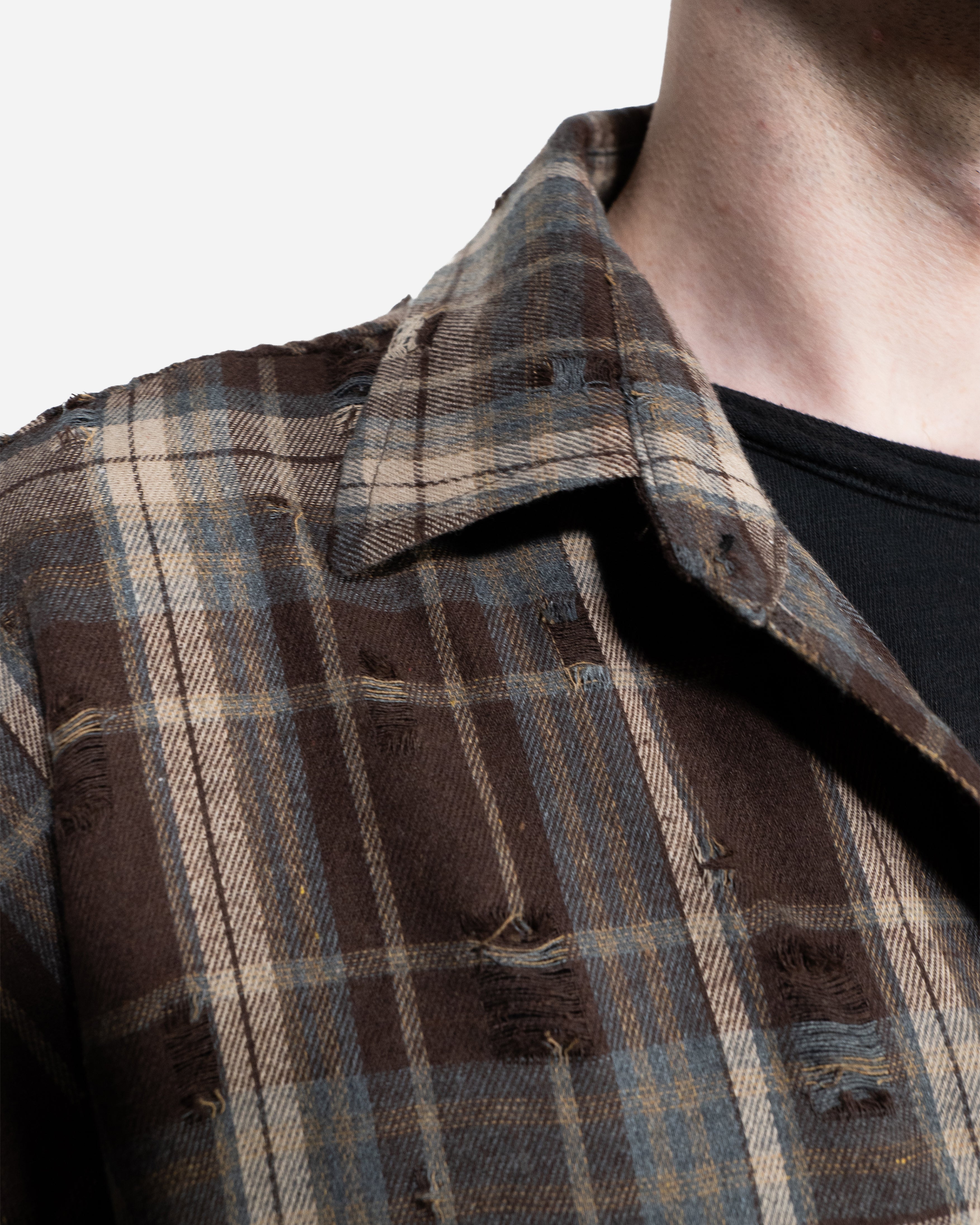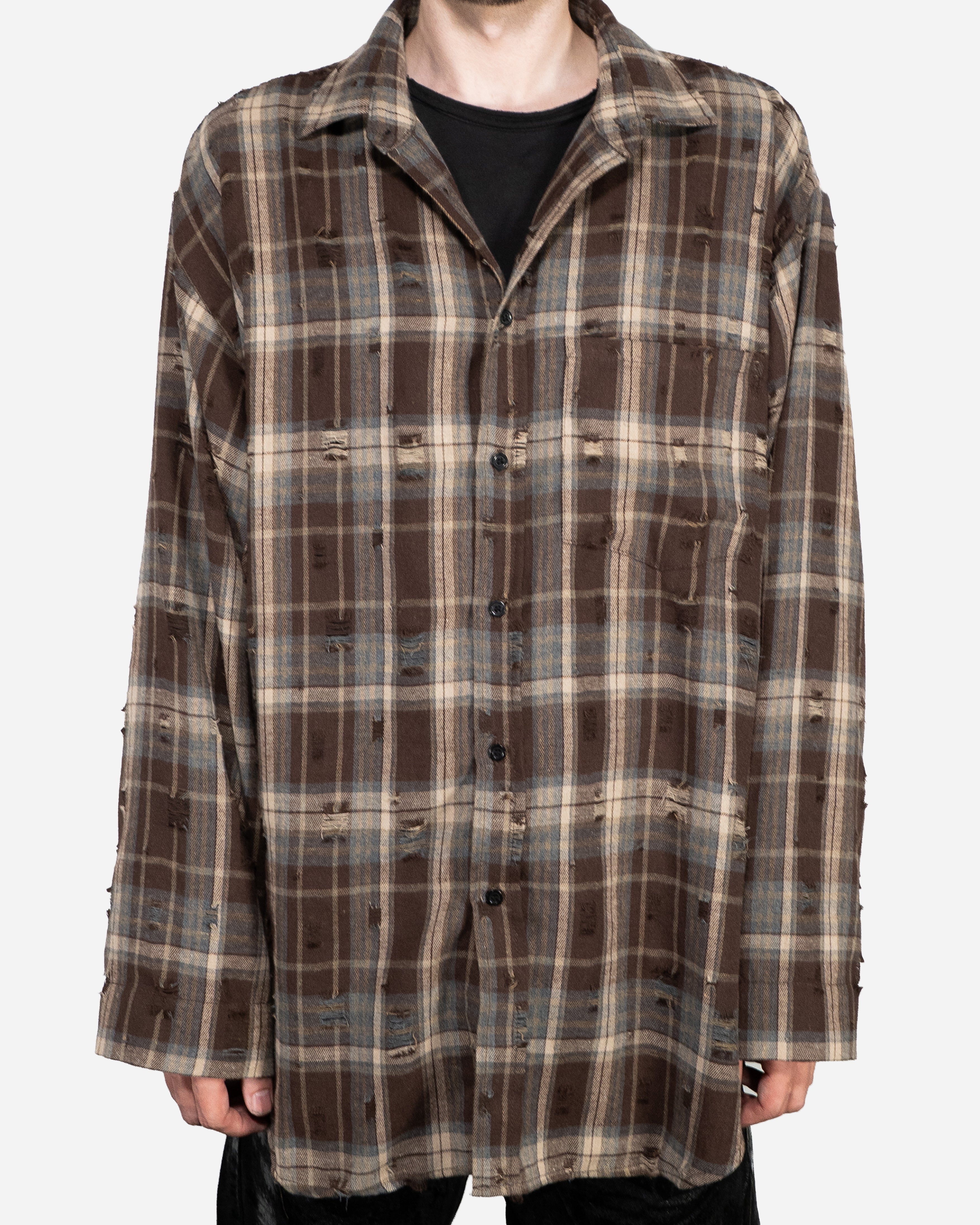 BROWN DISTRESSED OVERSHIRT